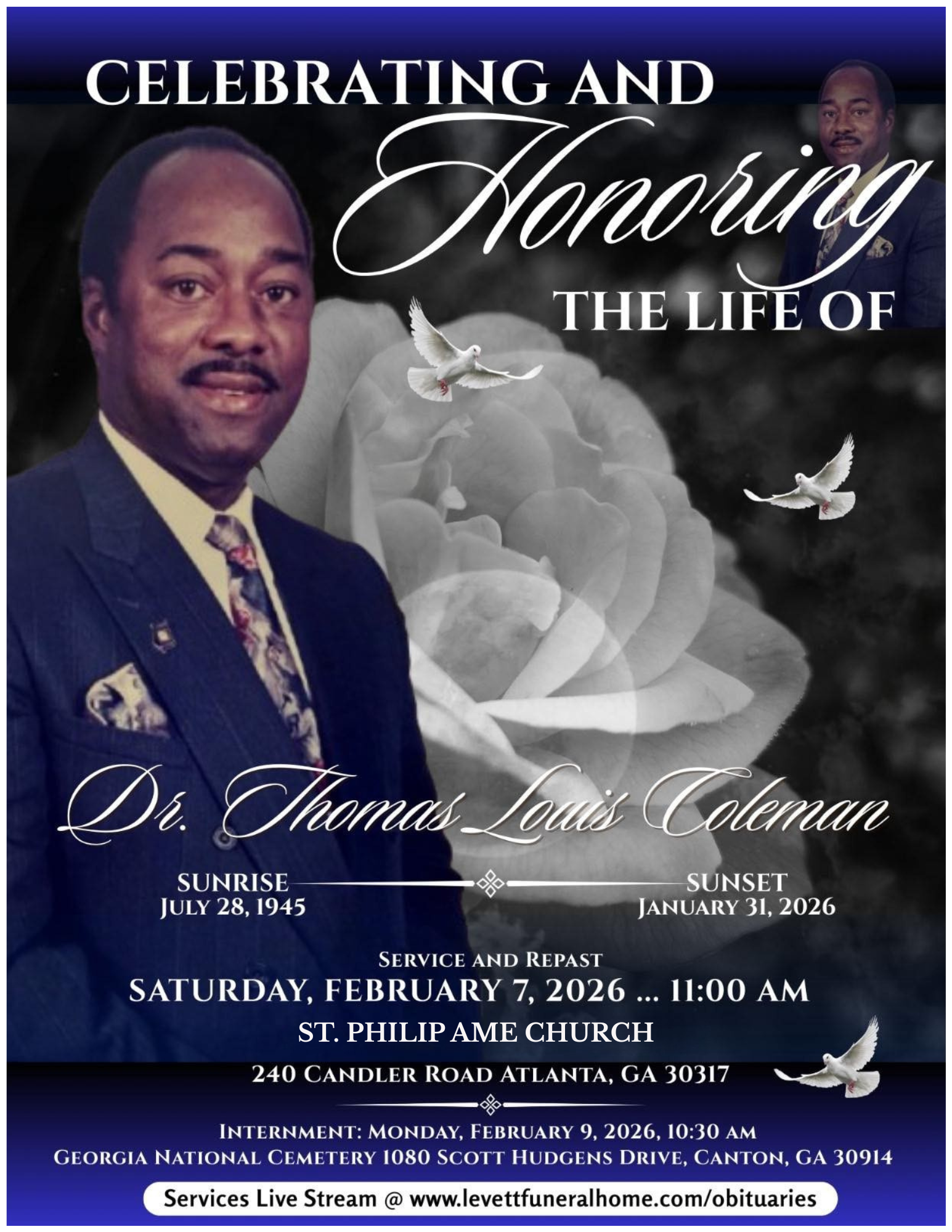 Today, roughly three weeks after his passing, the Georgia State House of Representatives honored Dr. Thomas L. Coleman with a proclamation and moment of silence during its Feb. 24, 2026, legislative session. House members recognized Dr. Coleman’s lifelong dedication to community service in DeKalb County and across the State of Georgia.